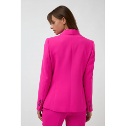 Americana entallada para mujer.Cuello con solapa. Cierre frontal con botón joya. Dos falsos bolsillos de solapa. Manga larga simple con botones a contraste. Bajo redondeado.