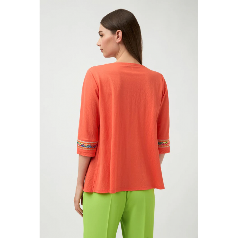 Chaqueta lisa de punto fino para mujer.Cuello pico con cierre frontal de dos botones. Diseño recto. Manga francesa con detalle de bordado en contraste. Bajo recto.