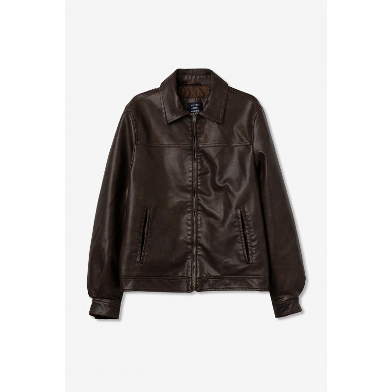 Cazadora efecto piel para hombre. Cierre de cremallera y bolsillos laterales.