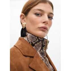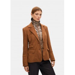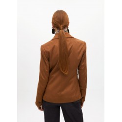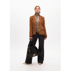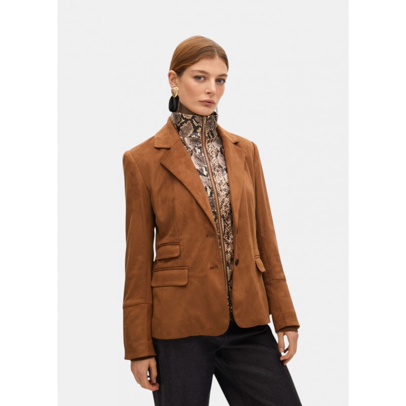 Americana en elegante antelina con chaleco interno efecto snake. De corte entallado, solapas clásicas y bolsillos con solapa. Cierre de botones y cremalleras doradas que aportan un toque sofisticado. Ideal para un look moderno y atrevido.