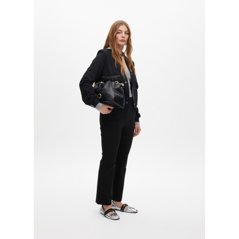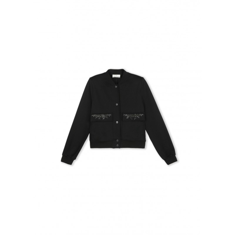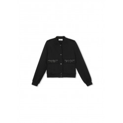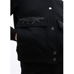 Bomber de diseño moderno para mujer. Con detalles de bolsillos joya. Confeccionada en tejido suave para mayor confort. Cierre frontal de botones y acabados de calidad. Ideal para destacar en cualquier ocasión.