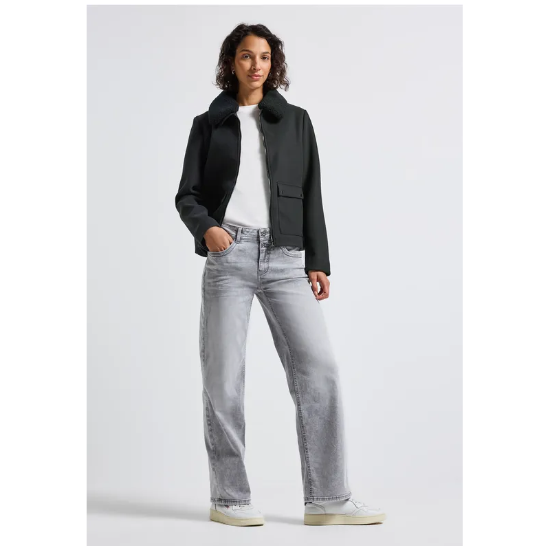 Chaqueta corta para mujer. El cuello de peluche desmontable le da un toque acogedor y un encanto versátil. Los bolsillos de parche y una práctica cremallera completan el diseño de forma funcional y elegante, ideal para looks casuales femeninos y cómodos.