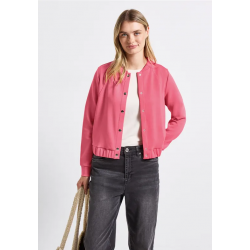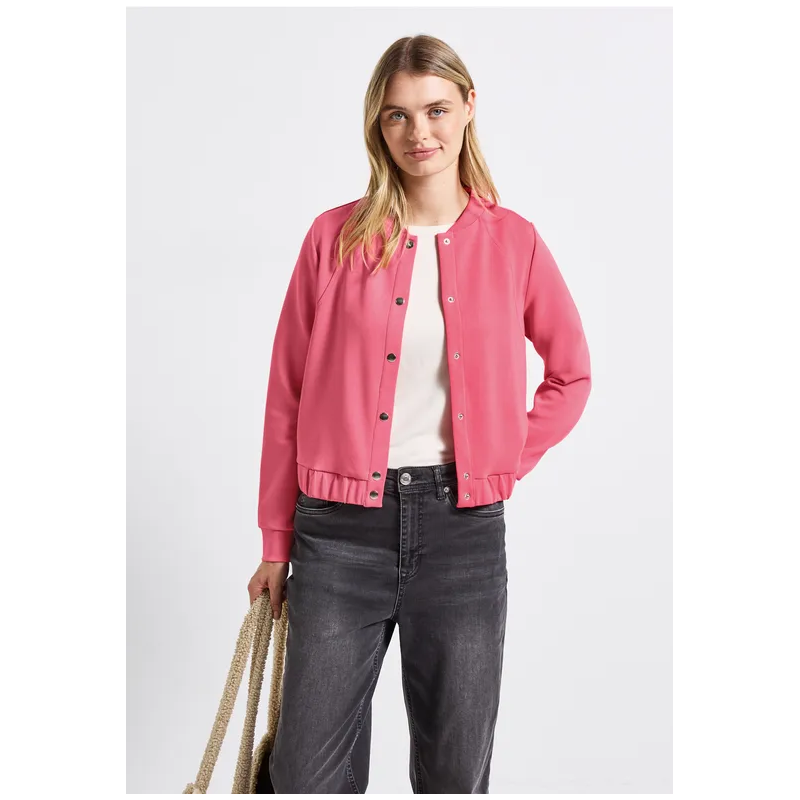Chaqueta deportiva para mujer. Los botones mate, el cuello redondo y el bajo elástico le dan una silueta moderna, mientras que los bolsillos laterales son muy prácticos. Perfecta para conjuntos de transición con estilo.
