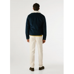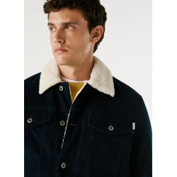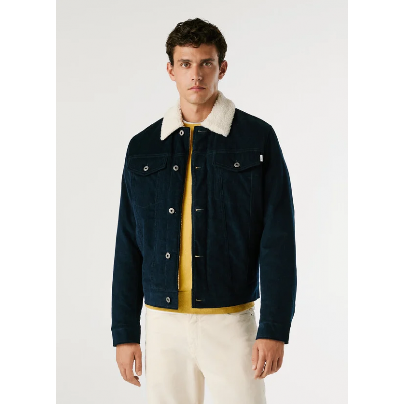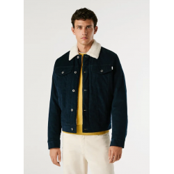 Cazadora confeccionada en pana para hombre. Cuello camisero en contraste con detalles de borreguito. Cierre frontal abotonado. Bolsillos de parche con solapa y botón en el pecho.