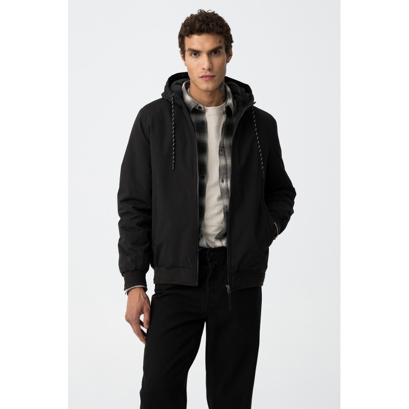 Chaqueta acolchada para hombre. Regular fit, resistente al viento y al agua, con dos bolsillos frontales y cierre de cremallera. Capucha ajustable con cordón, manga larga y acabados en canalé elástico. Interior con detalle afelpado y un bolsillo.