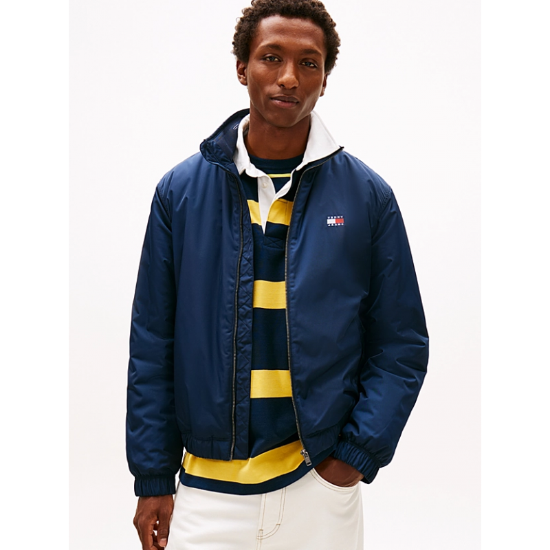 Chaqueta cortavientos acolchada para hombre. De corte amplio, ideal para días fríos, cuenta con un forro aislante y un acabado protector que repele el agua. Cuello chimenea. Puños y bajo elásticos.
