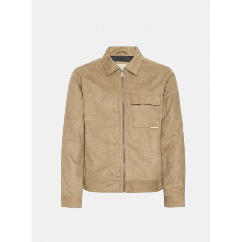 Chaqueta efecto ante para hombre. Cierre de cremallera. Cuello camisero. Bolsillo en el pecho.
