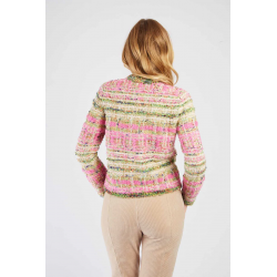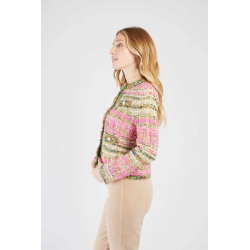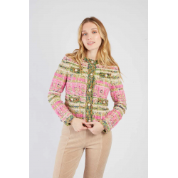 Chaqueta de punto jacquard para mujer. Con un estampado abstracto en relieve para un estilo chic y moderno. Mangas largas y cuello redondo, con botones efecto perla. Dos bolsillos de parche en la parte delantera completan el corte. Ideal para realzar un conjunto formal o añadir personalidad a un look casual.