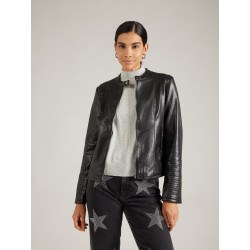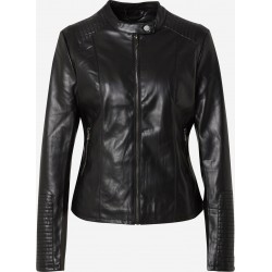Chaqueta efecto piel para mujer. Cuello mao. Bolsillos laterales con cremallera. Ligeramente forrado. Cierre con cremallera.