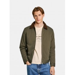 Cazadora tipo bomber para hombre de cierre de cremallera, cuello de solapa con detalle de pana a contraste y mangas largas.
