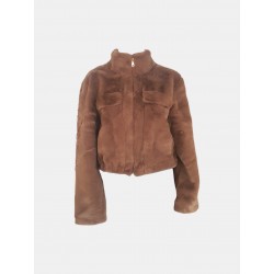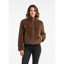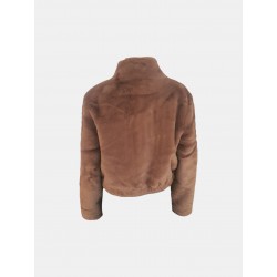 Chaqueta efecto pelo para mujer. Cuello alto. Cierre de cremallera. Bolsillos frontales.