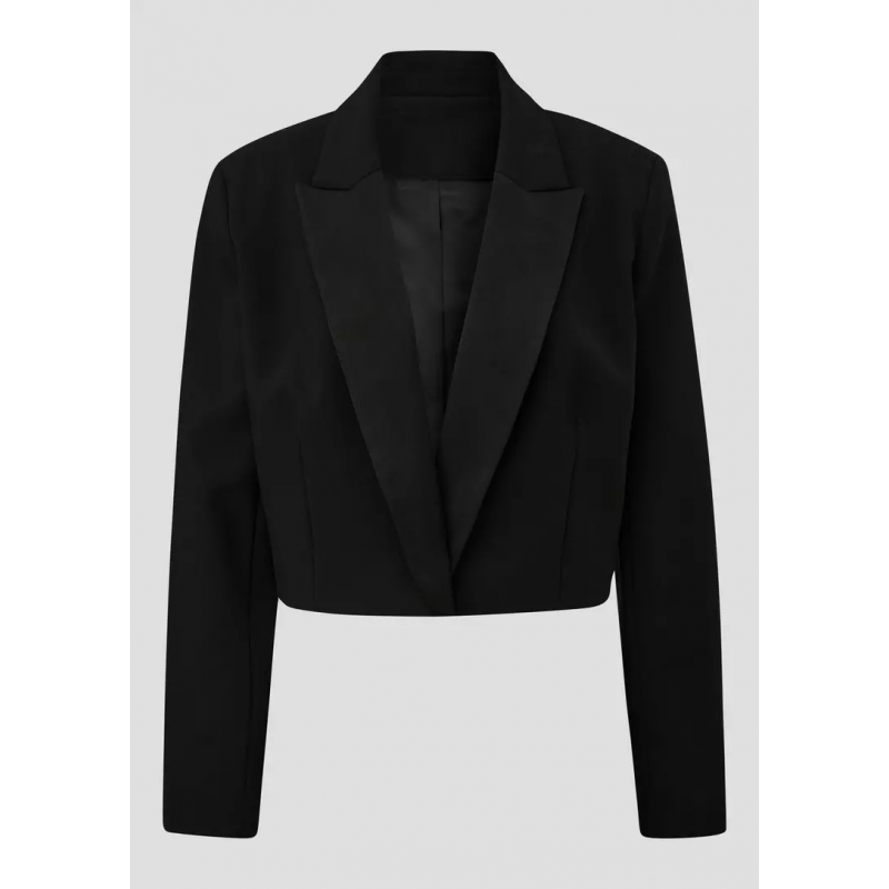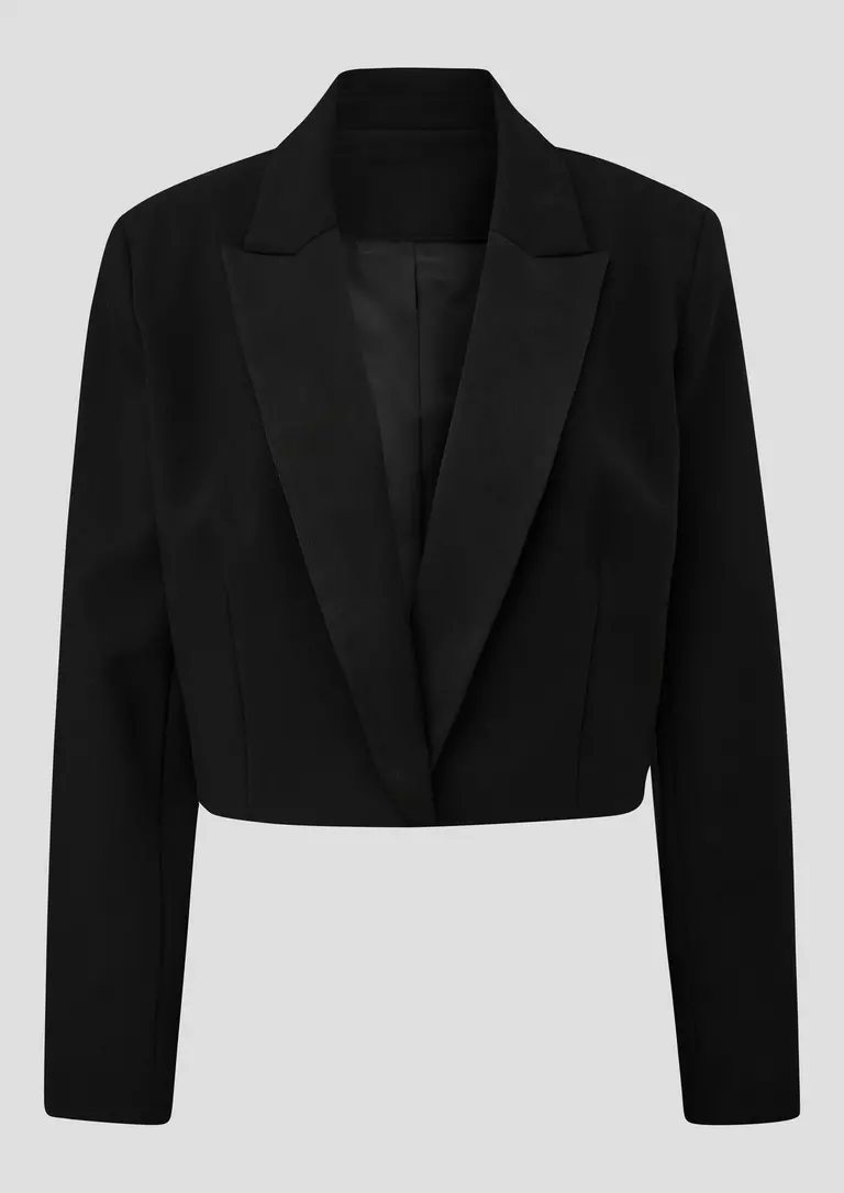 Blazer corto para mujer. El elegante ribete de satén en la solapa le da un toque de glamour a su corte regular. Perfecto para ocasiones festivas en las que buscas un look sofisticado. La tela de sarga de alta calidad con forro de tafetán garantiza un look impecable.