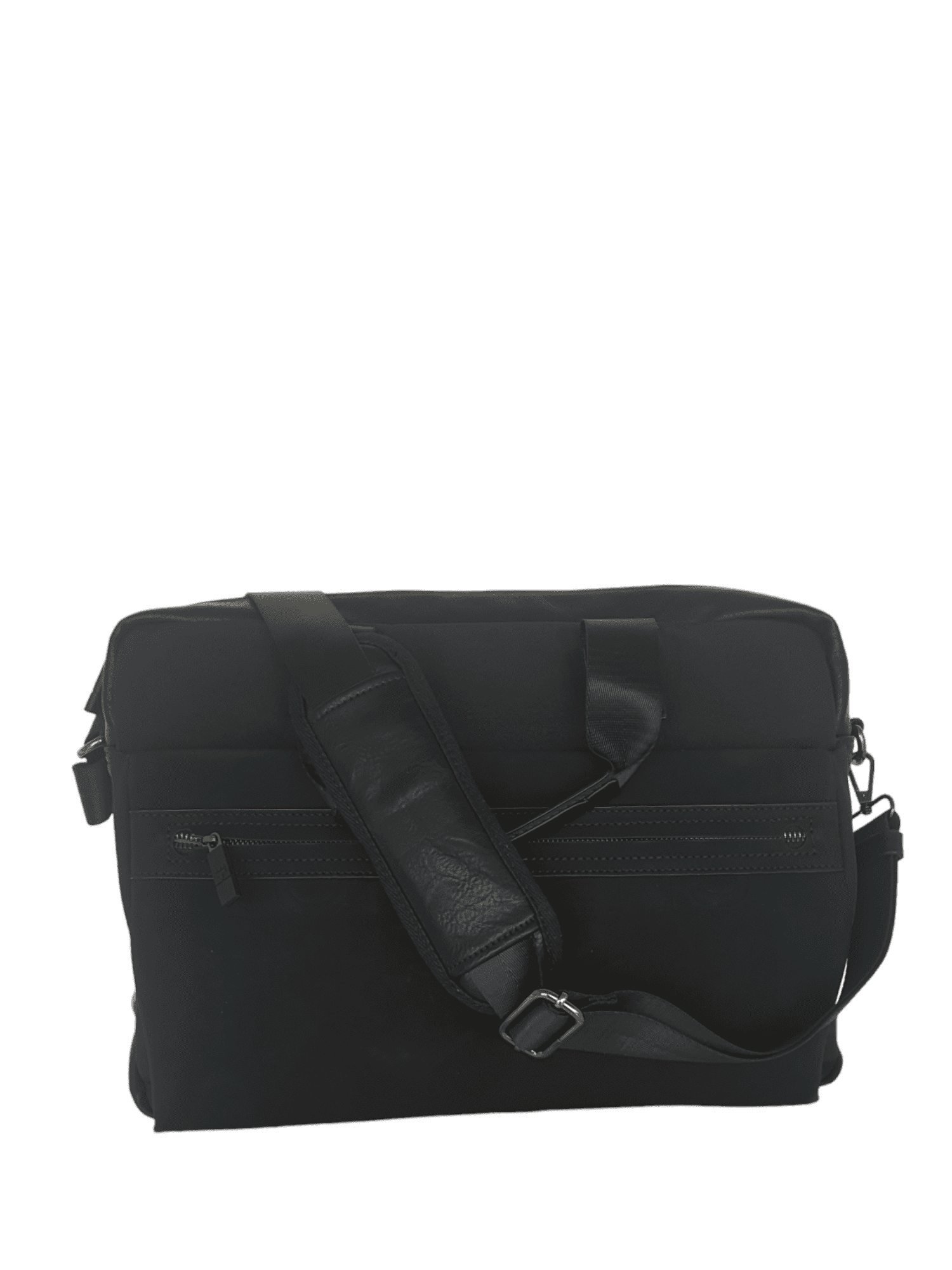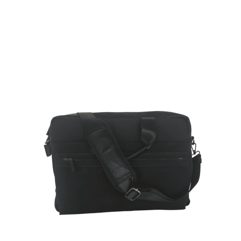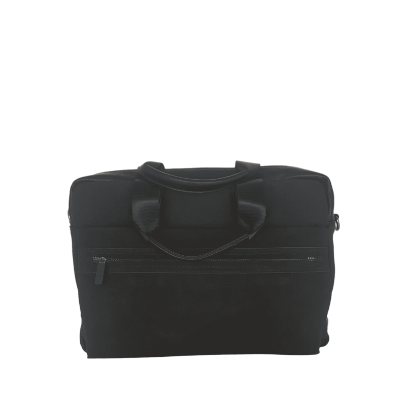 Maletin con cierre de cremallera. Dos bolsillos frontales y uno trasero. Asa regulable.