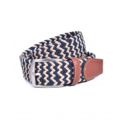 Cinturón trenzado para hombre. Con detalles en auténtica piel de vacuno. Su elasticidad facilita un cómodo ajuste en la cintura. Un modelo muy versátil, que se abrocha en la misma trenza. Pasador de piel identificado a fuego con la marca. Hebilla metálica en acabado níquel satinado.