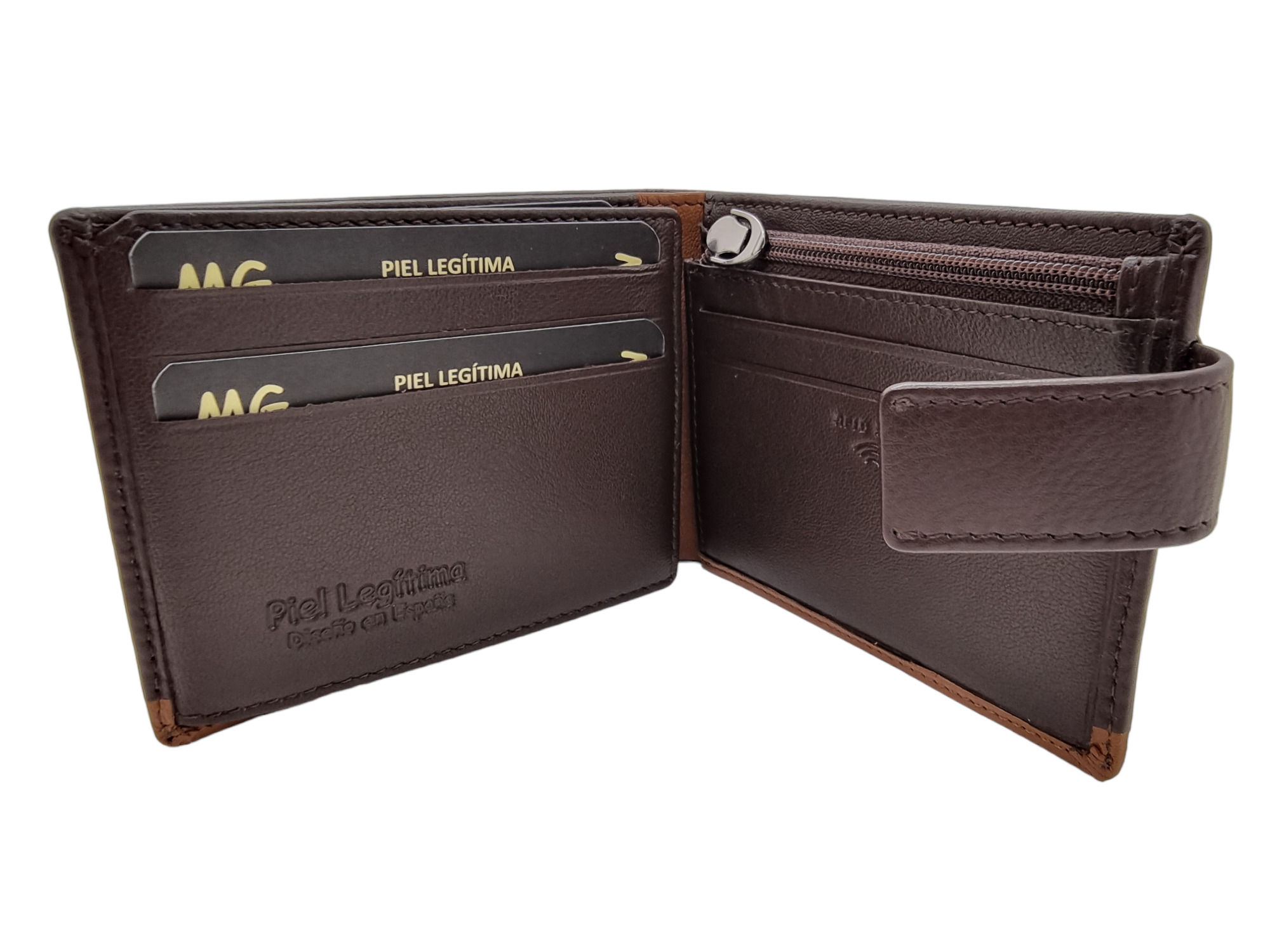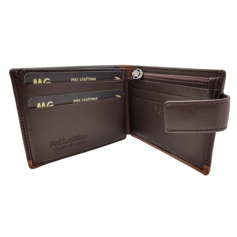 Cartera de piel de vacuno para hombre.Monedero interior con cierre de cremallera.