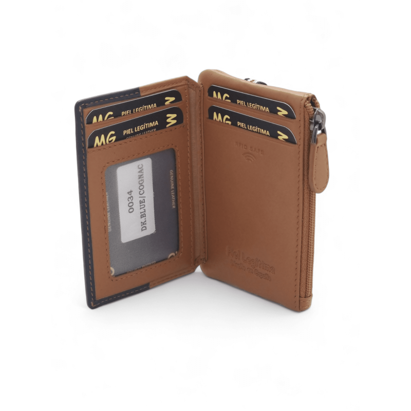 Monedero tarjetero de piel para hombre.Diseñado con un compartimento para monedas, capacidad para 6 tarjetas y sistema RFID anti robo.