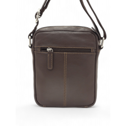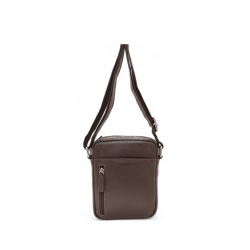 Bolso tipo bandolera de piel para hombre. Se cierra con una cremallera en la parte superior para mayor seguridad. Bolsillo frontal, orientado verticalmente. Asa ajustable.