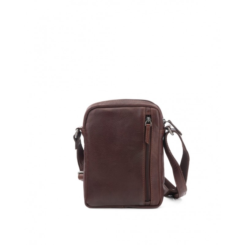 Bolso bandolera en piel vacuno para hombre.Dispone de un bolsillo con cremallera tanto en la parte frontal como en la trasera. Otra cremallera da acceso desde arriba al departamento principal.