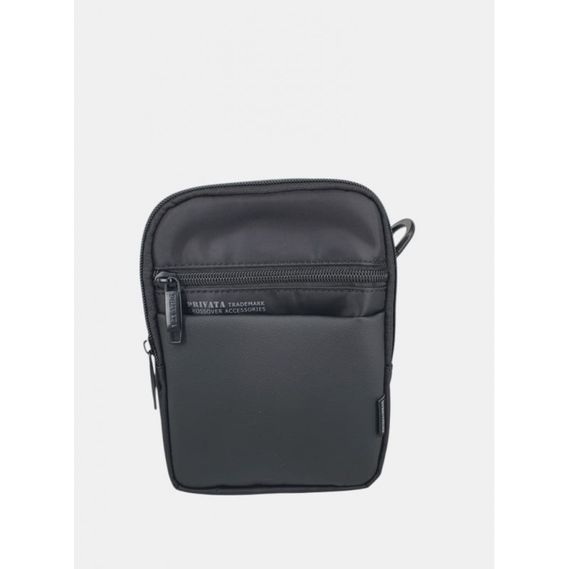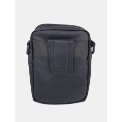 Bolso para hombre de diseño compacto y funcional, compartimento principal con cierre de cremallera más bolsillos interiores y exteriores, detalles de la marca y asa ajustable para llevar tipo bandolera. Es un accesorio práctico para llevar objetos personales de forma organizada.