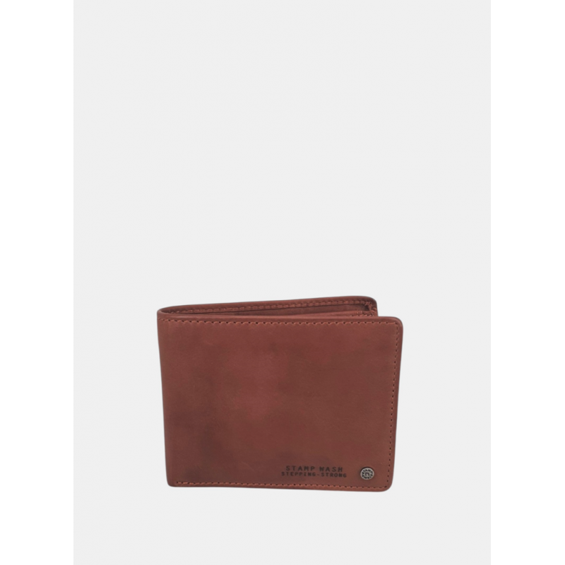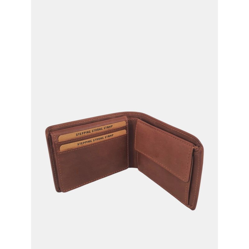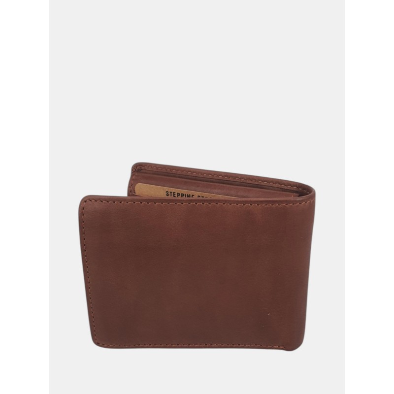 Cartera para hombre de diseño horizontal que cuenta en su interior con múltiples ranuras horizontales para tarjetas, bolsillo monedero con cierre de solapa y broche a presión con forro interior de la calidad y costuras visibles.