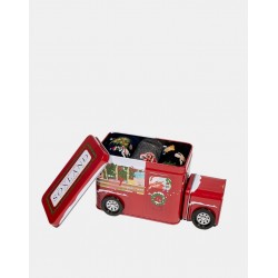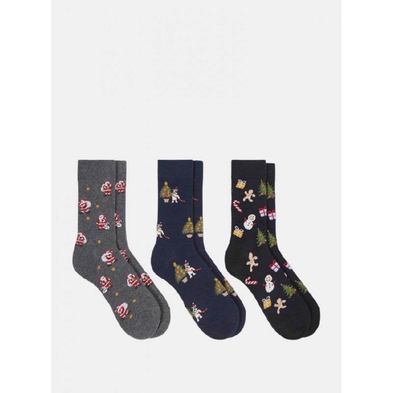 Pack-3 calcetines de navidad para hombre. Presentados en una caja de metal con forma de coche. Remallados a mano para un acabado de calidad. Puño sensitive: se ajusta sin apretar.