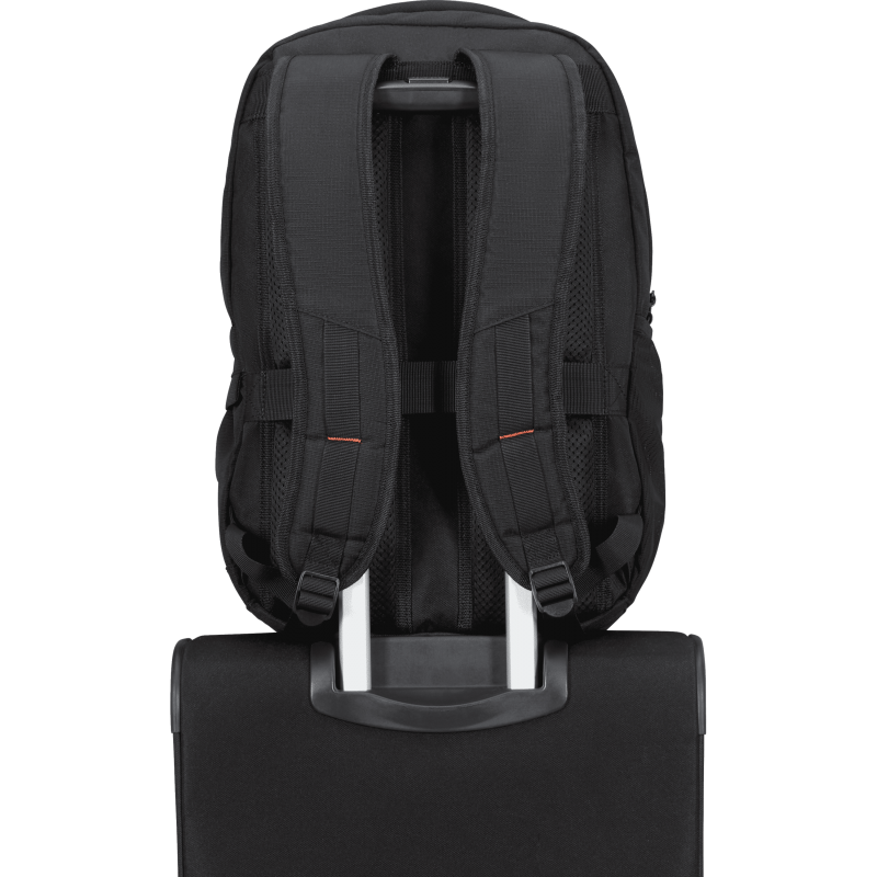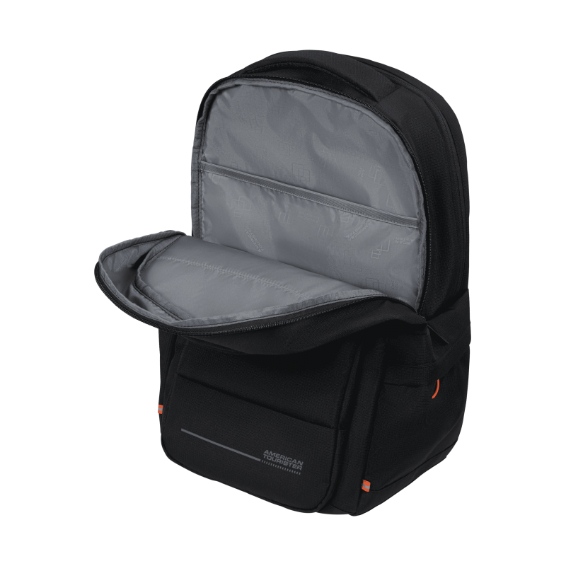 Mochila de viaje con compartimento para portátil de 17.3". Capacidad de 38 litros y un peso de 0.9Kg. Asa superior y dos bolsillos frontales, 1 bolsillo trasero y un bolsillo lateral. Tiene soporte para botella y detalles reflectantes.