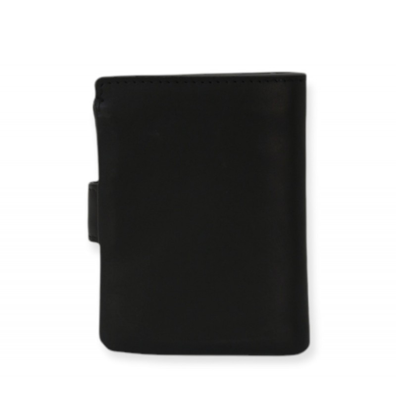 Tarjetero vertical fabricado en piel vacuno. Tarjetero metálico interior con accionamiento autómático con capacidad para 6 tarjetas.