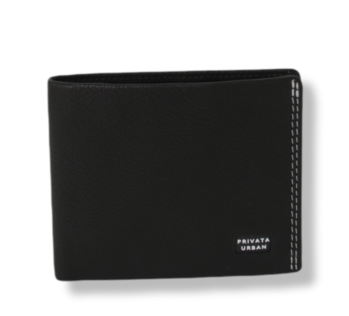 Billetero fabricado en piel vacuno lavado con un acabado de spray. Logo 'Privata' grabado a fuego en la parte frontal. Capacidad para 7 tarjetas. Departamento para billetes y monedero interior con cierre de clip.