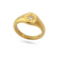 Anillo de acero quirúrgico hipoalergénico de detalle central de estrella con circonita.