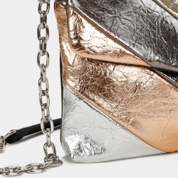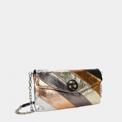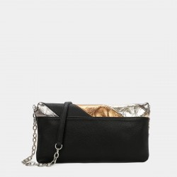 Cartera con solapa Prudenza. Tiene una cadena en su interior para poder llevarlo como bandolera, haciendo así de una cartera un bolso cómodo y versátil. Los detalles metálicos son de color nickel. Tiene tres bolsillos, uno de ellos con cremallera, Chapon logo Binnari en el frente.