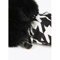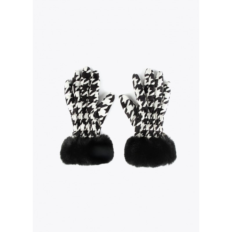 Guantes acolchados pata de gallo con pelo en zona muñeca y medallita dorada y logotipada.