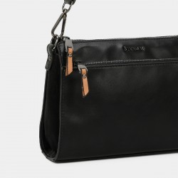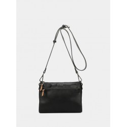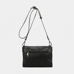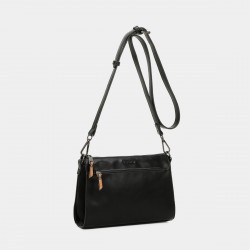 Bolso bandolera Mafalda confeccionada en pu de alta calidad y antelina. De tamaño medio pero capaz de almacenar todo lo necesario. Asa ajustable. Bolsillos exterior en la parte delantera y trasera. Detalles metálicos en color plata.