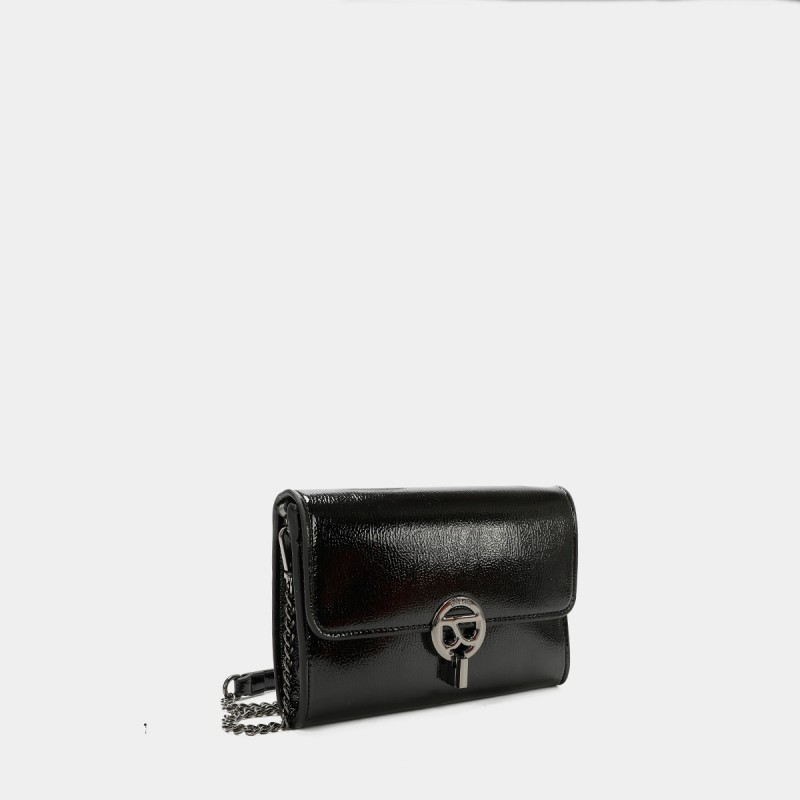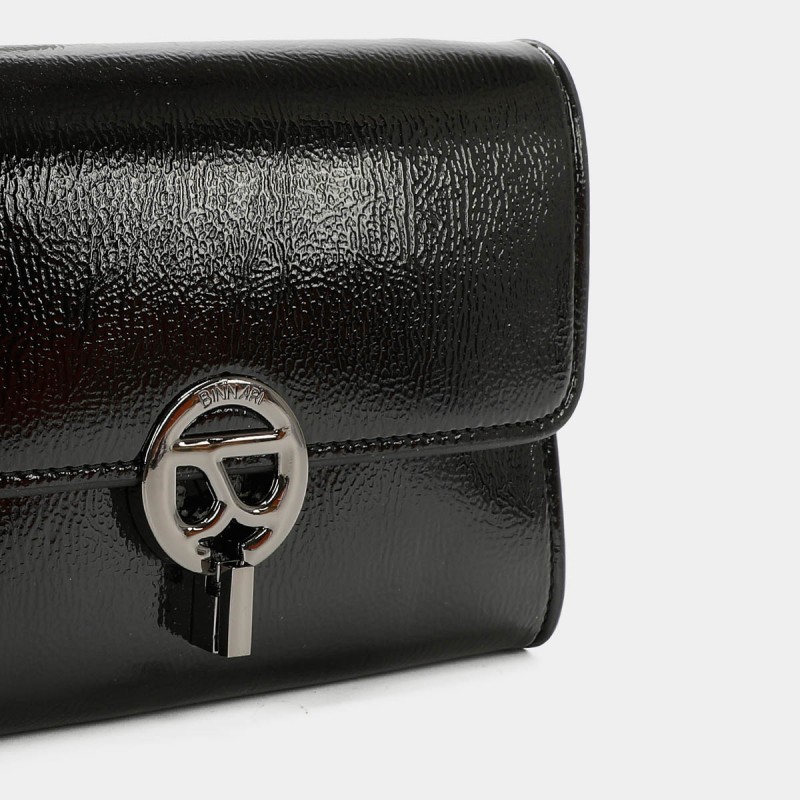 Cartera pequeña Electtra. Cuenta con un asa más larga en su interior  para poder llevarla como bandolera. Se accede a ella por medio de un cierre con el logotipo Binnari. En el interior encontramos diferentes bolsillo, uno de ellos con cremallera para una mayor seguridad.