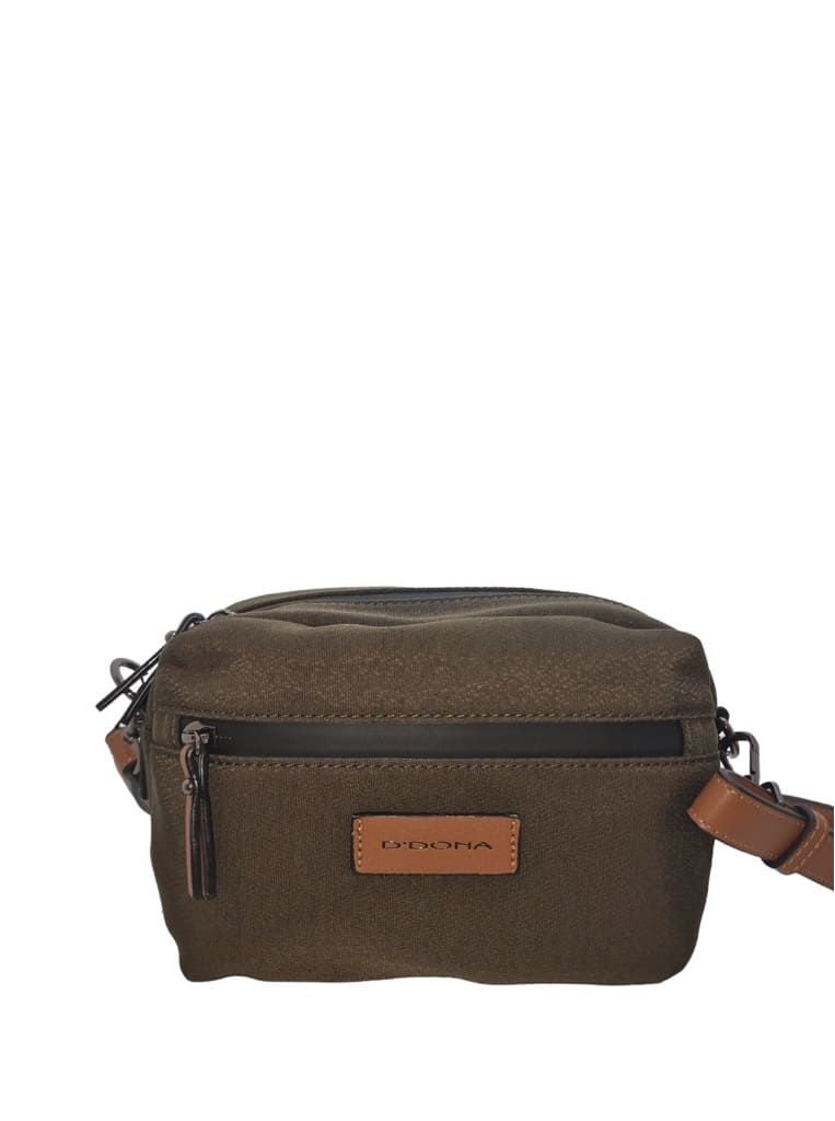 Bolso bandolera con cierre de cremallera y asa regulable. Tiene bolsillos en la parte delantera y trasera con cremallera.