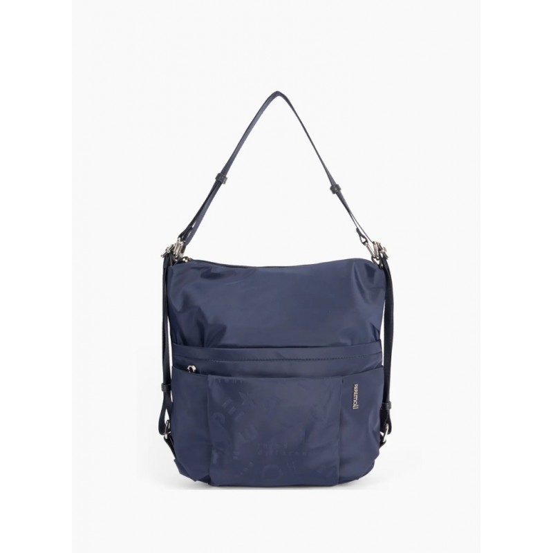 Bolso de nylon con cierre de cremallera para mujer. Doble bolsillo exterior frontal con cierre de cremallera. Asa doble función, bandolera convertible en mochila regulable.