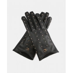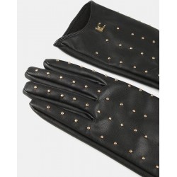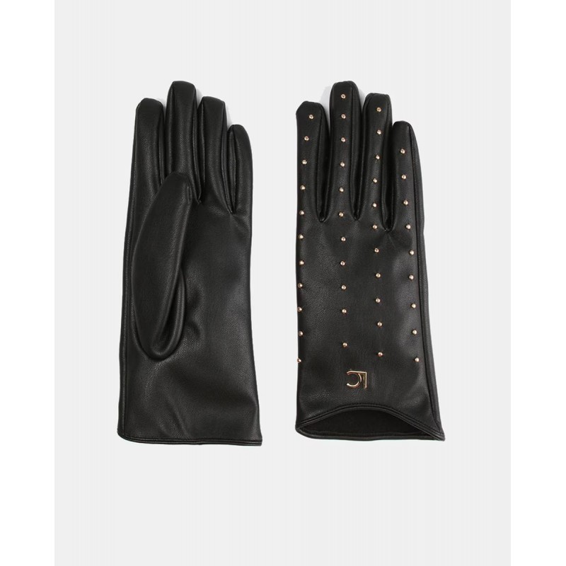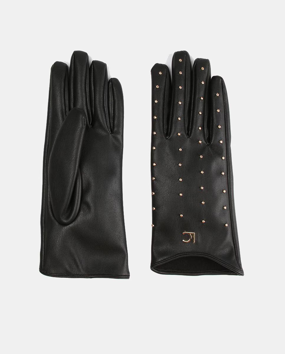 Guantes efecto piel para mujer. Con tachitas pequeñas doradas. Chapita logo LC en un lateral.