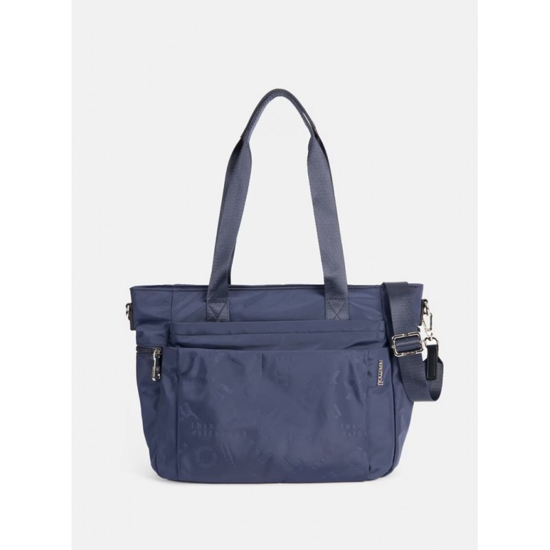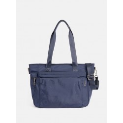 Bolso grande de nylon para mujer.Dos asas de hombro y una de cruzar, cierre de cremallera. Doble bolsillo exterior frontal y uno trasero.