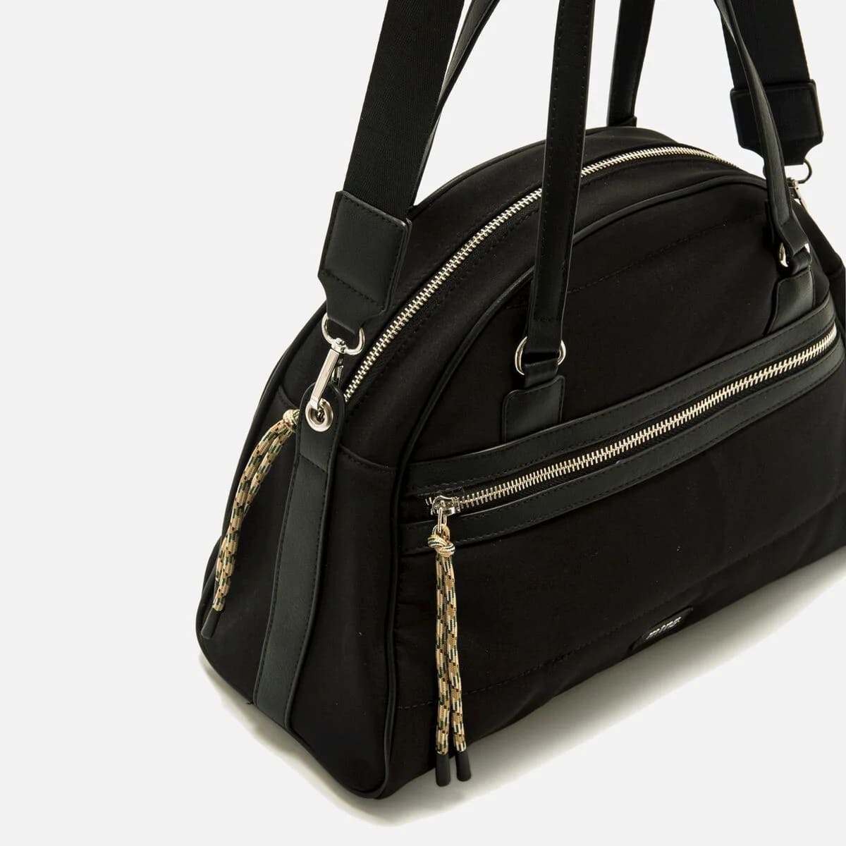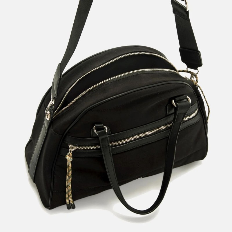 Bolso casual para mujer.Tira extraíble para llevarlo colgado en formato de bandolera, así como una tira para llevar al hombro. Bolsillo frontal de color negro con cierre de cremallera. Incluye un tirador.