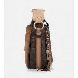 Bolso tipo bandolera para mujer. Cierre de cremallera cuenta con 3 compartimentos independientes en su interior, es de tamaño mediano y tiene bolsillos en el frontal y la trasera. El asa es una bandolera regulable a diferente largo, perfecta para adaptarla a la altura que prefieras. El interior es forrado y cuenta con bolsillos.
