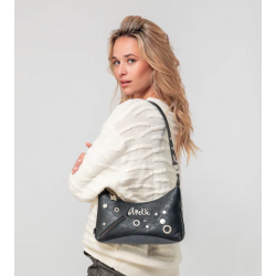 Bolso de hombro ovalo para mujer inspirado en un estampado de un viaje al centro de la Tierra que cuenta con cierre de cremallera. El interior es forrado y tiene bolsillos, además de otro en la parte exterior trasera. El asa bandolera es extraíble.
