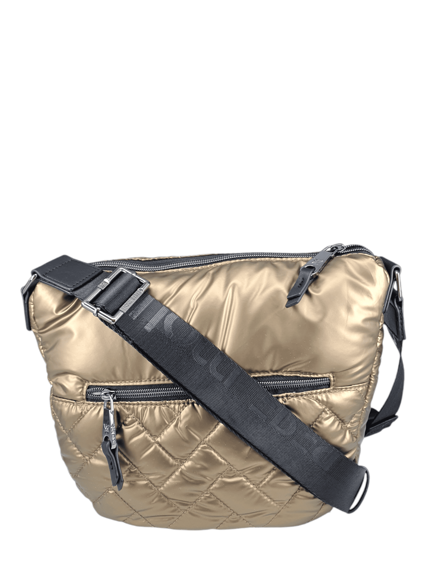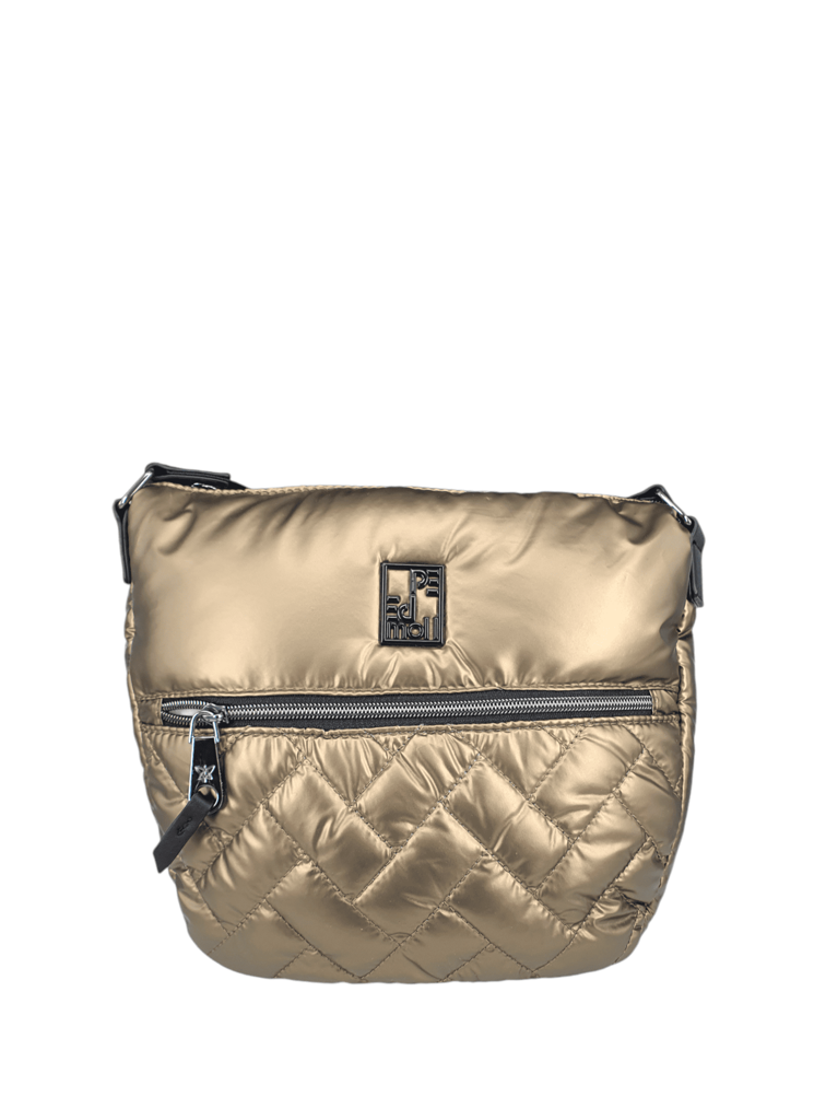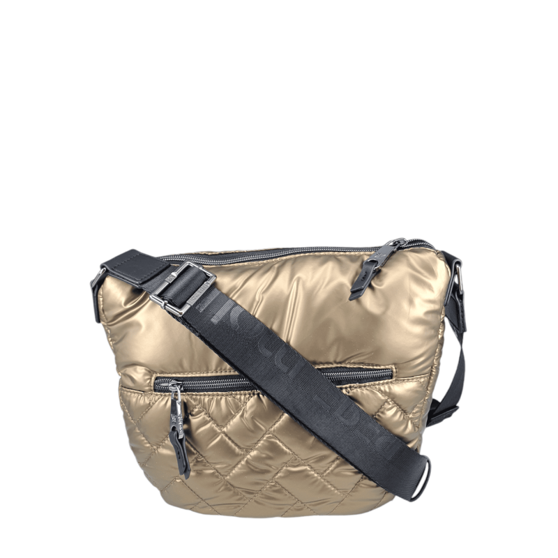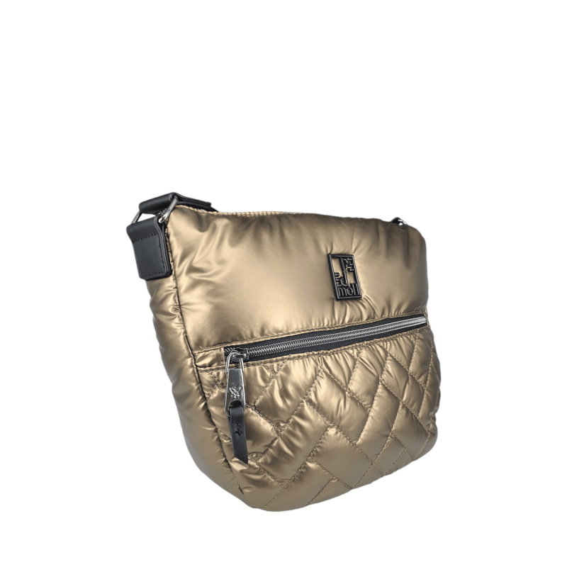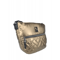 Bolso tipo bandolera acolchado para mujer.La correa ajustable permite llevarlo cruzado o al hombro para mayor comodidad. Cierre con cremallera principal.