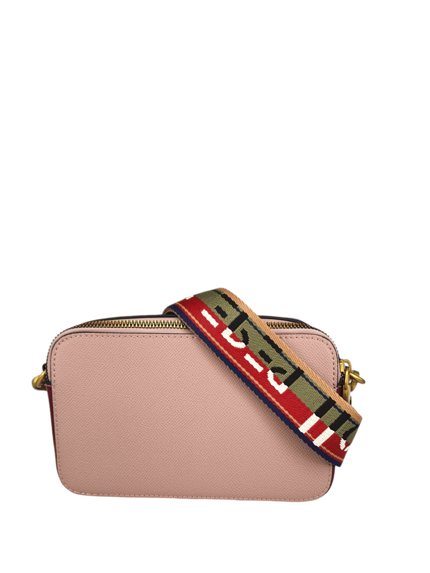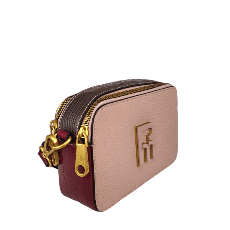 Bolso tipo bandolera para mujer.Forma rectangular y tamaño mediano. El cierre de doble cremallera dorada. Un compartimento amplio y un bolsillo adicional con cremallera para mantener tus objetos organizados.