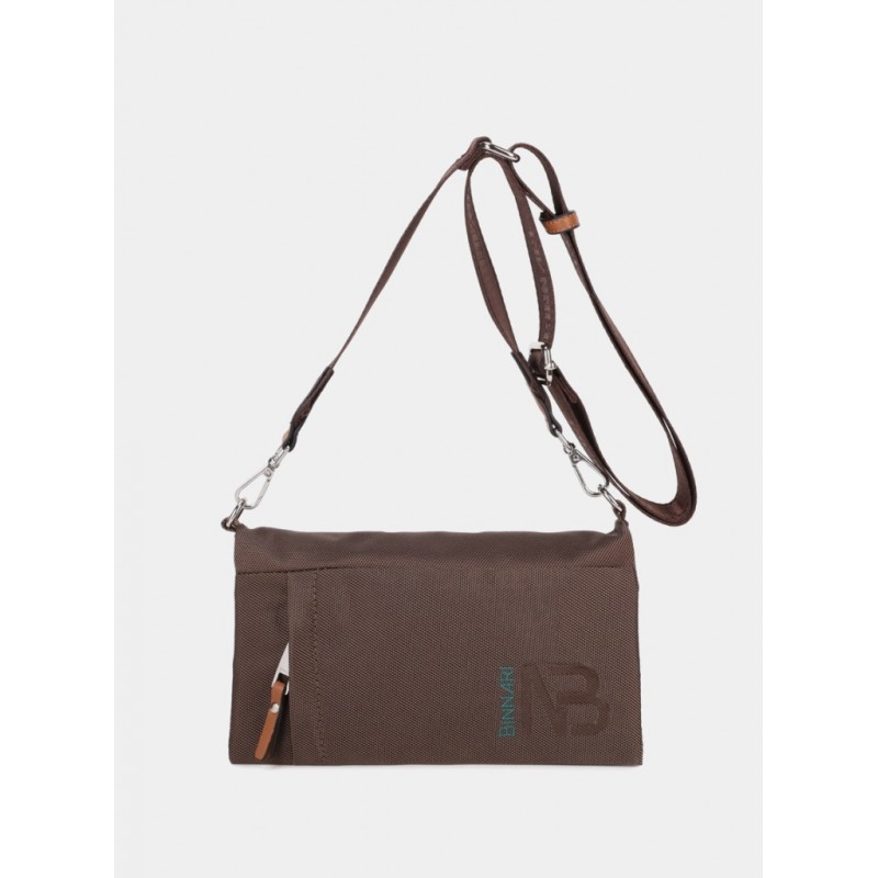 Bolso tipo bandolera con solapa para mujer.Confeccionado en nylon y detalles en pu. Asa ajustable Parte delantera: chapa con logo Binnari y bolsillo con cremallera. Interior: 2 departamentos.