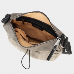 Bolso tipo bandolera para mujer.Confeccionado en nylon y detalles en pu. Asa ajustable. Exterior:un bolsillo con cremallera y uno fruncido. Interior: un bolsillo con cremallera.