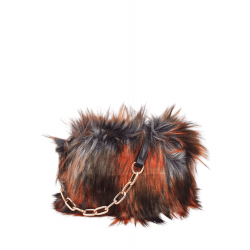 Bolso tipo bandolera efecto pelo para mujer. Cierre principal con cremallera. Logo frontal.