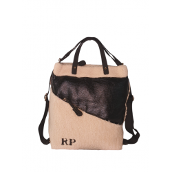 Bolso de hombro con borrego para mujer. Asas de mano, asas regulables, convertible en mochila, cierre con cremallera , 1 bolsillo exterior.