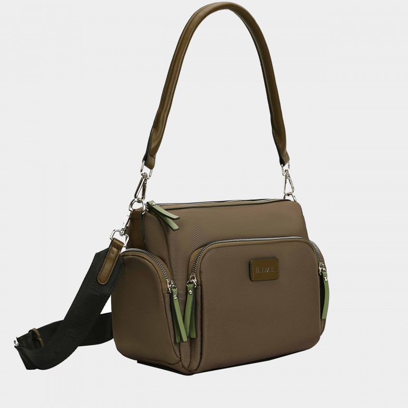 Bolso combinado para mujer de cierre principal de cremallera, 5 bolsillos exteriores, bolsillos interiores y asas ajustables y extraíbles de dos posiciones para llevar al hombro o tipo bandolera.