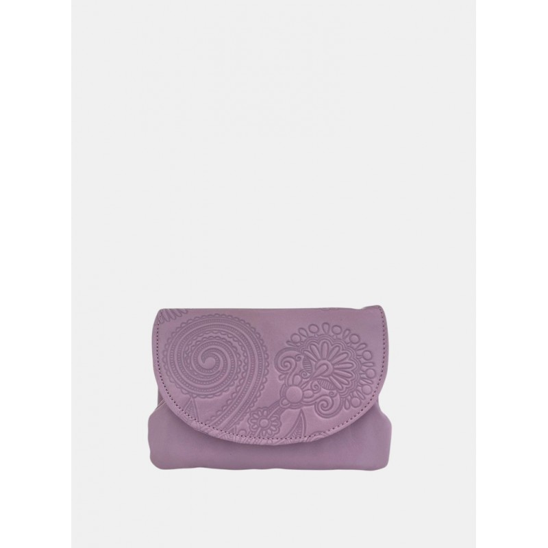 Monedero de piel para mujer. Con cremallera trasera y boquilla interior. Personalizado con el logotipo de Lugupell.