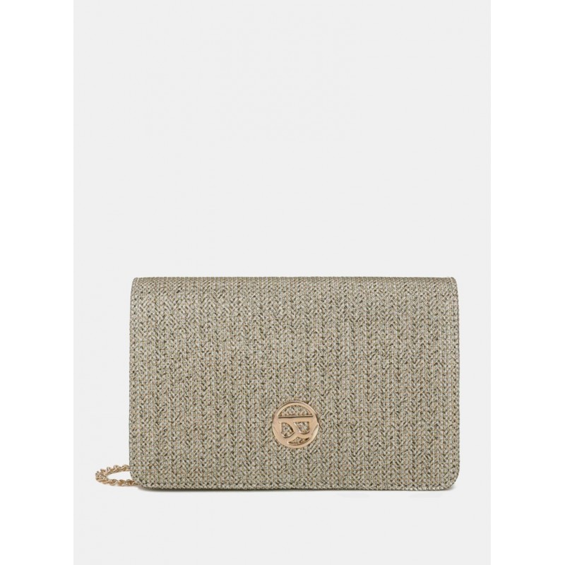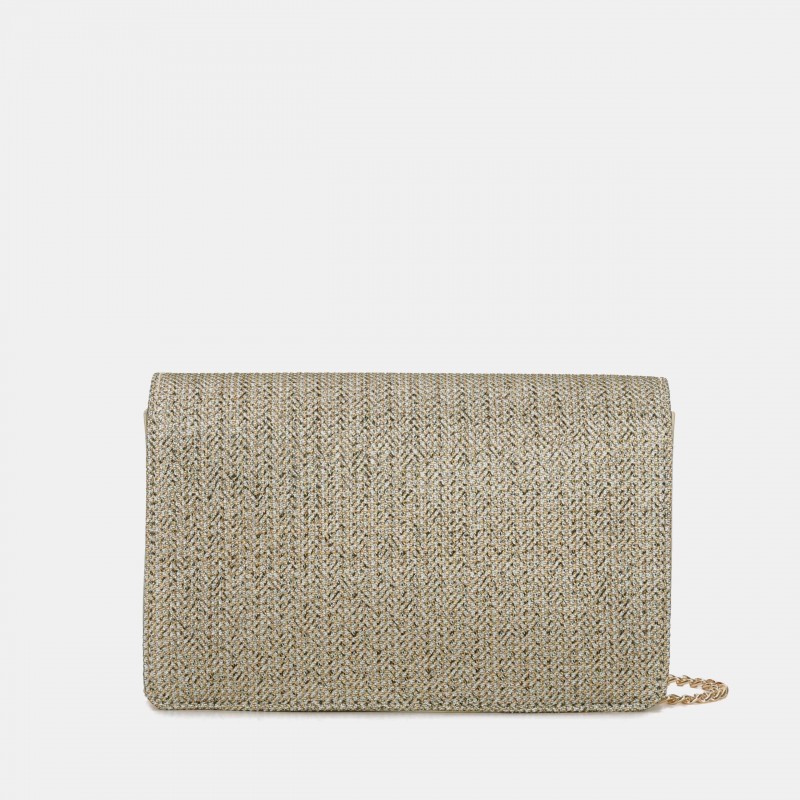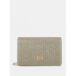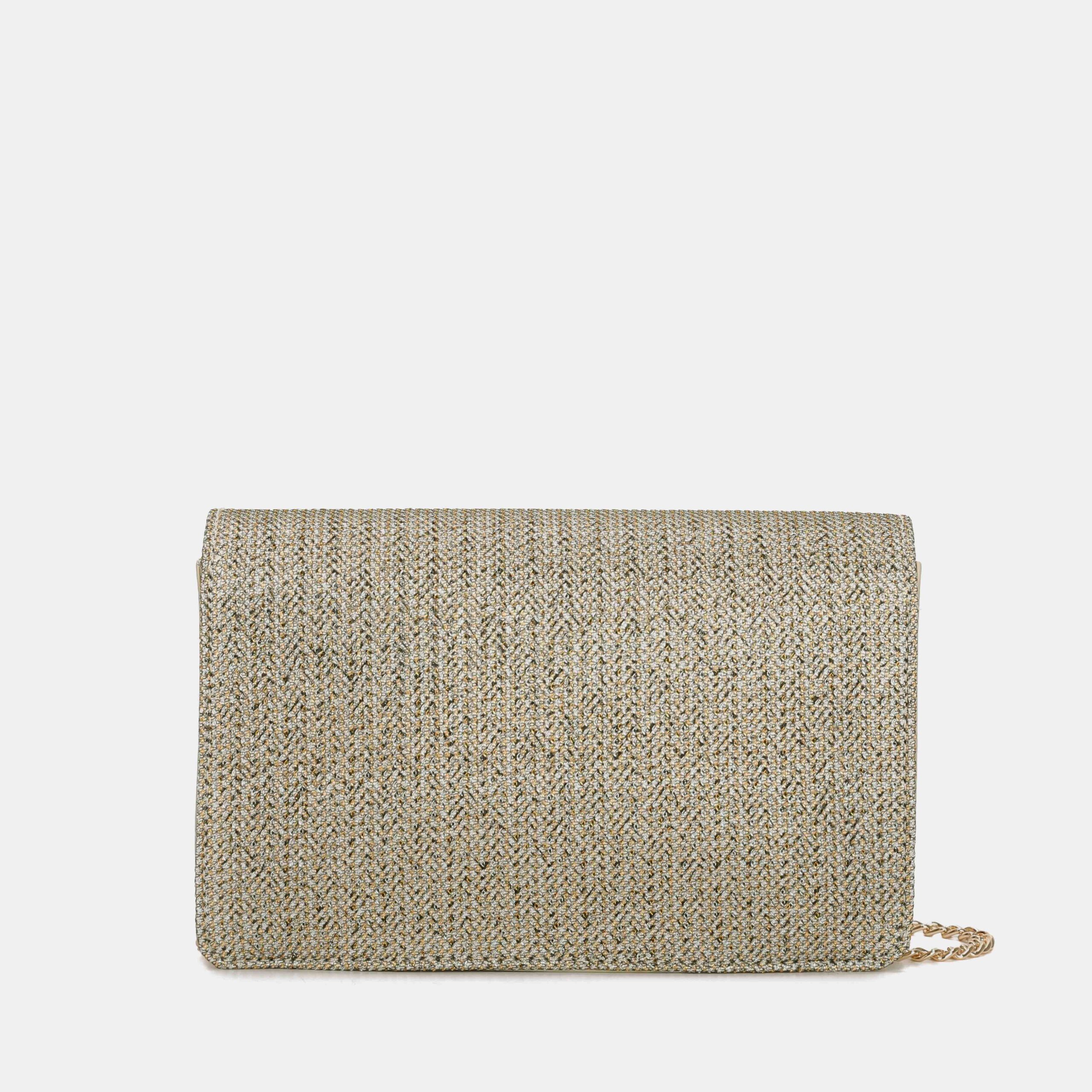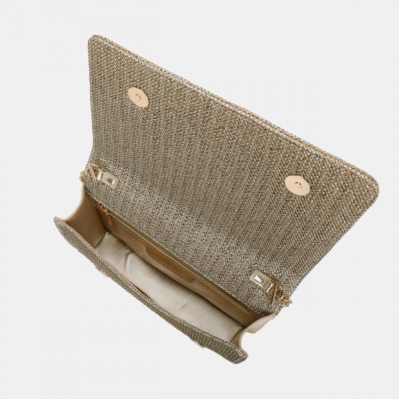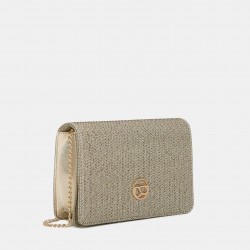 Bolso bandolera para mujer. Se accede a su interior por medio de la solapa y en él encontramos varios bolsillos, uno de ellos con cremallera para aportar así una seguridad mayor. Asa metálica.