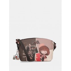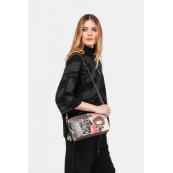 Bolso pequeño para mujer de destalles de la marca y llavera, cierre principal de cremallera, bolsillos exteriores e interiores y asa ajustable para llevar tipo bandolera.
